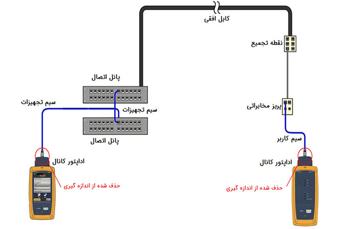 نمونه ی ساده تری از آزمایش کابل شبکه میباشد که ابتدا دو سر کابل شبکه را کیستون زده، با استفاده از پچ کورد کابل ها را به دستگاه متصل کرده و سپس آنالیز فلوک آن را میگیریم.