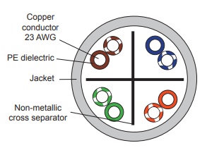 جنس هادی از مس و قطر مقطع 23AWG و جنس عایق هادی پلی اتیلن است.